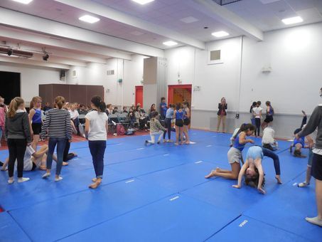 Plusieurs élèves de la section gymnastique acrobatique ont profité de la demi-journée d'accueil des futurs élèves de 6e pour leur présenter cette discipline sportive artistique collective à travers des démonstrations. A la suite de cela, les futurs 6e qui le souhaitaient pouvaient venir s'initier à la pratique de cette discipline avec l'aide des élèves de la section et du professeur responsable de la section, Madame FONTAINE. Les sourires sur les visages et l'envie de continuer à pratiquer ont pu mettre en évidence que cette séance de découverte / initiation a été grandement appréciée de tous.