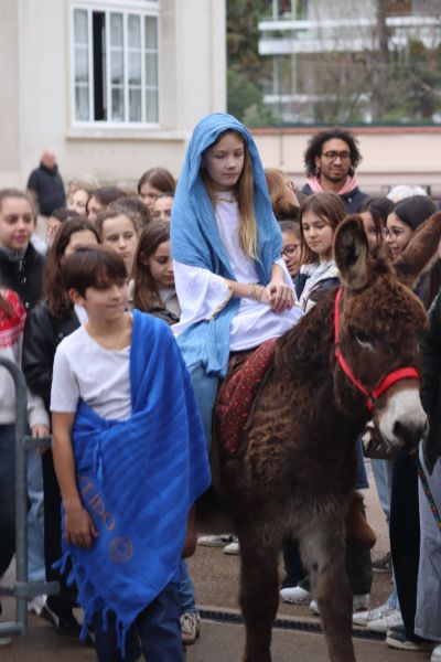 Vendredi 19 décembre 2025, un événement inattendu a marqué notre collège : nous nous sommes mis en chemin avec Marie de Nazareth à Bethléem. Les premiers témoins, de simples bergers sont dans l’espérance d’une venue qui illuminera leur vie. Les mages se mettent en route et suivent une étoile annonciatrice. Marie et Joseph cheminent avec courage et confiance. Une grand merci à nos 6èmes qui ont offert une très belle crèche vivante à la leurs camarades et à notre professeur d’Arts Plastiques, Madame Salah pour la réalisation de cette belle crèche.