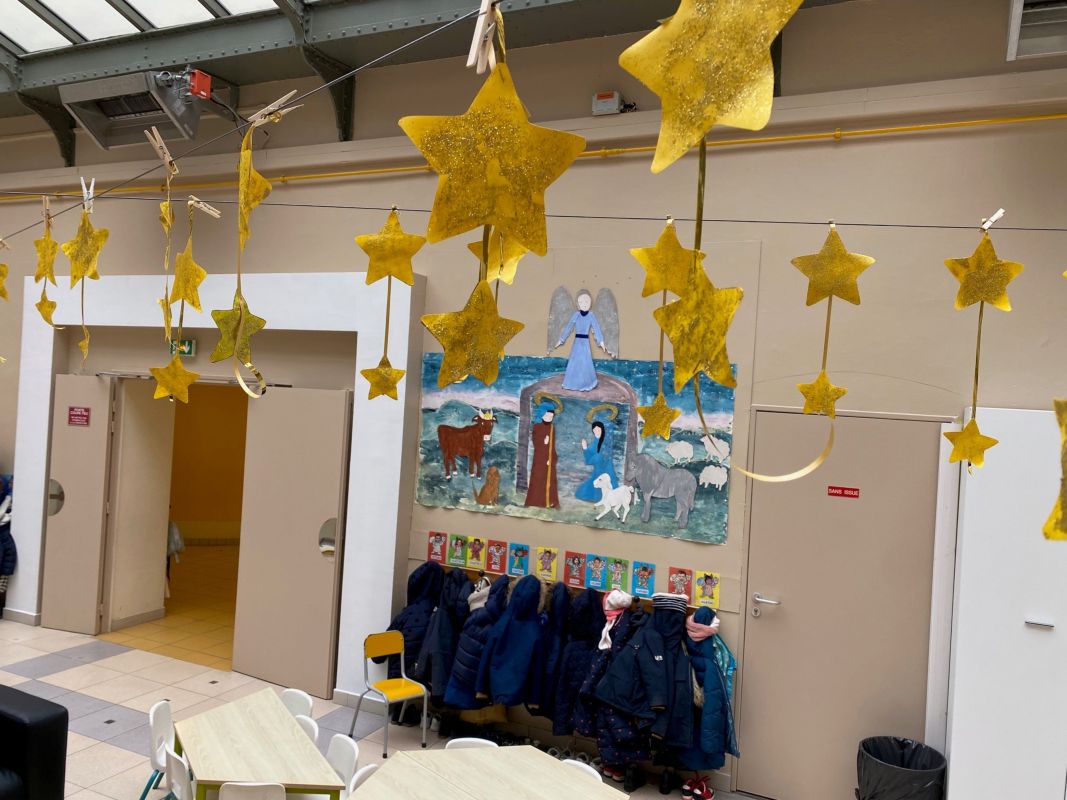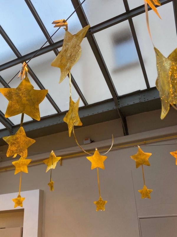 Les PS ont réalisé des étoiles scintillantes pour accueillir le petit enfant que l’on attend dans la crèche.