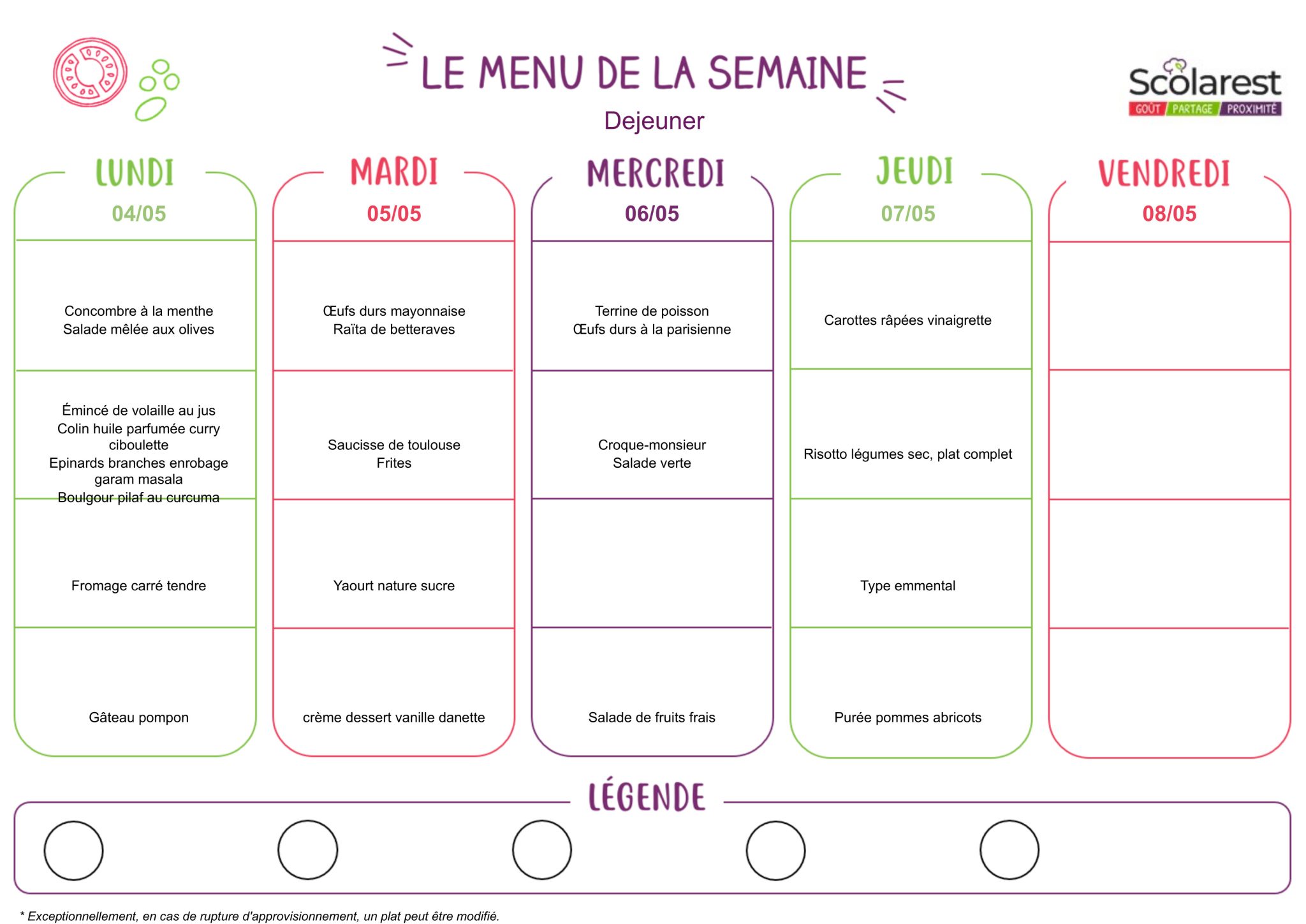 Menu du 4 au 8 mai 2026