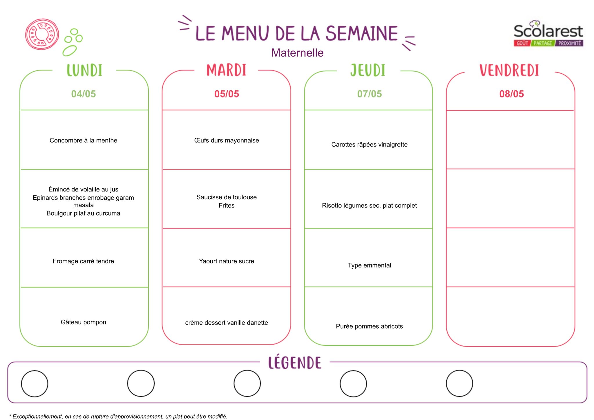 Menu école maternelle