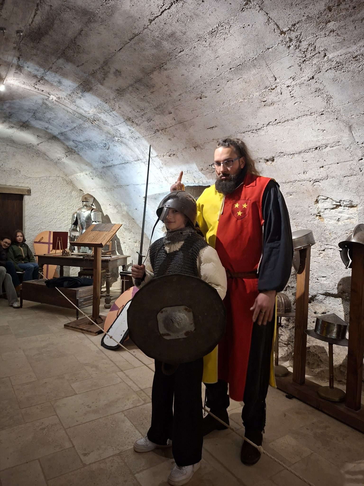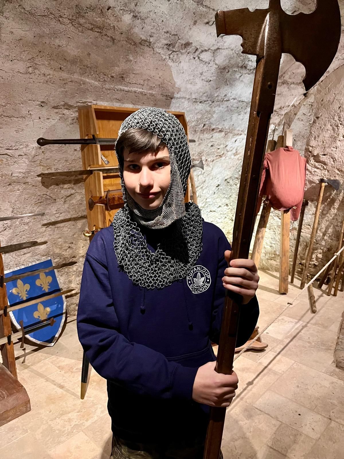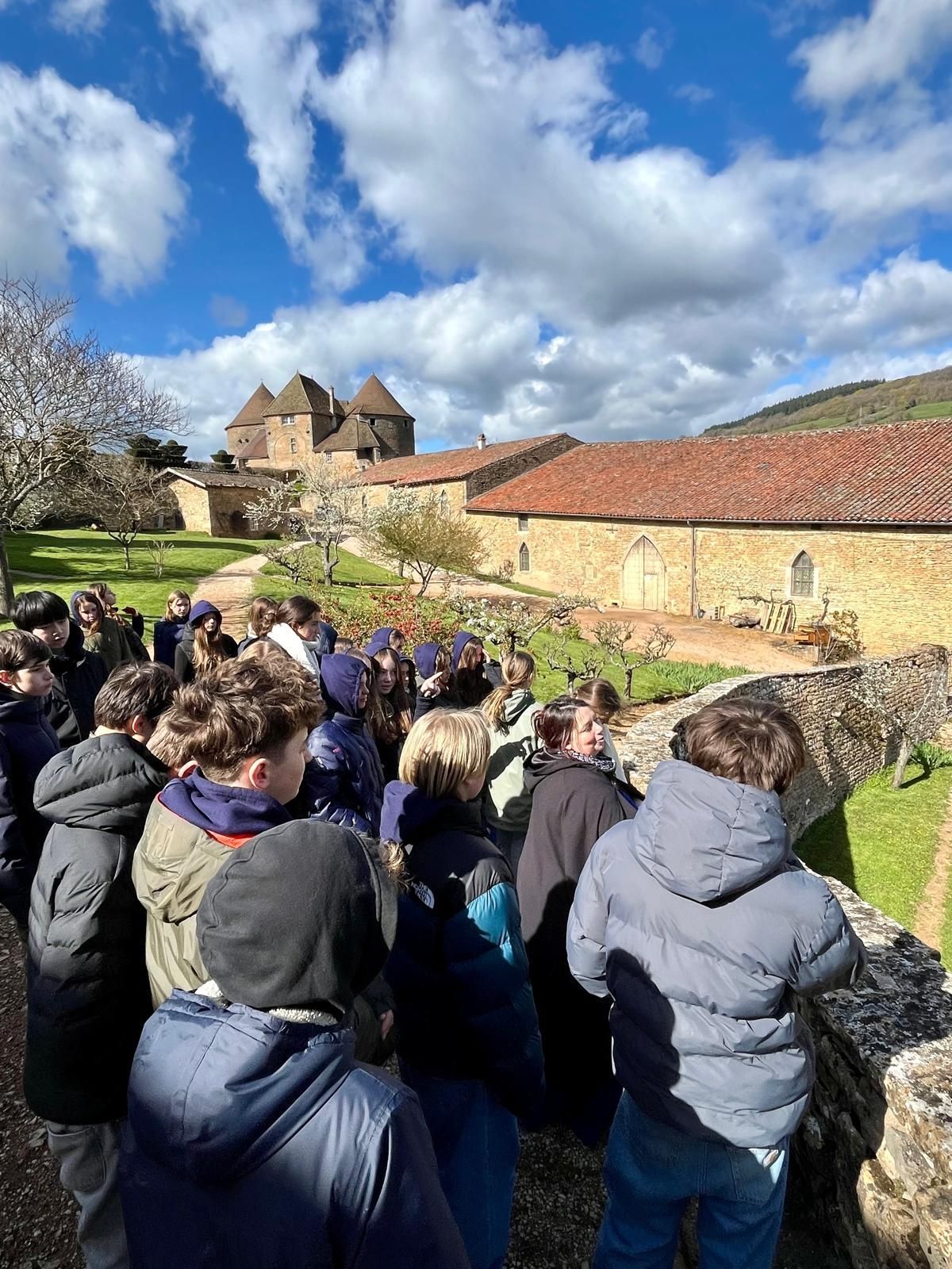 Le séjour s’est poursuivi par la visite de la forteresse de Berzé-le-Châtel, château fort construit entre le XIe et le XVe siècle pour protéger l’abbaye de Cluny. Les élèves ont découvert la vie des chevaliers et de leurs familles, et certains ont même eu la chance d’être symboliquement adoubés !