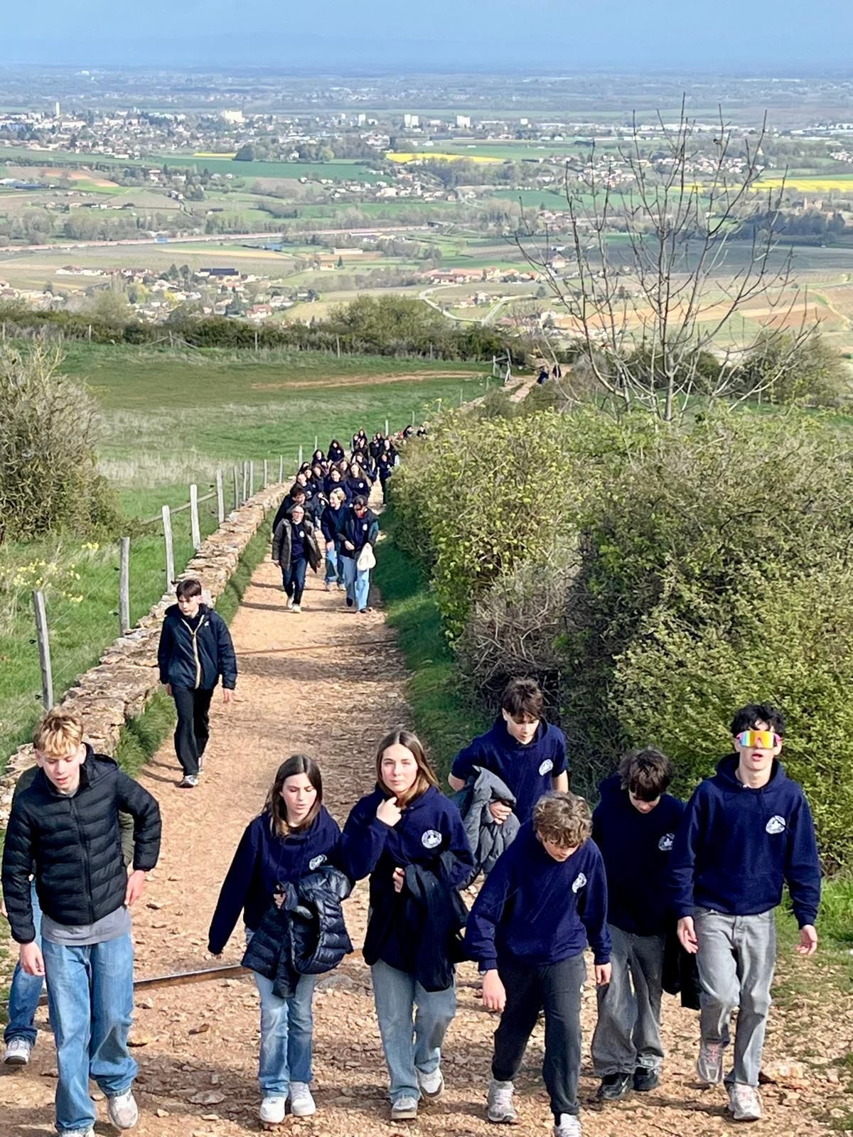 Au programme, une belle mise en jambes avec l’ascension de la Roche de Solutré (495 m). Sous un soleil printanier, les élèves ont profité d’un panorama exceptionnel sur les vignobles mâconnais.